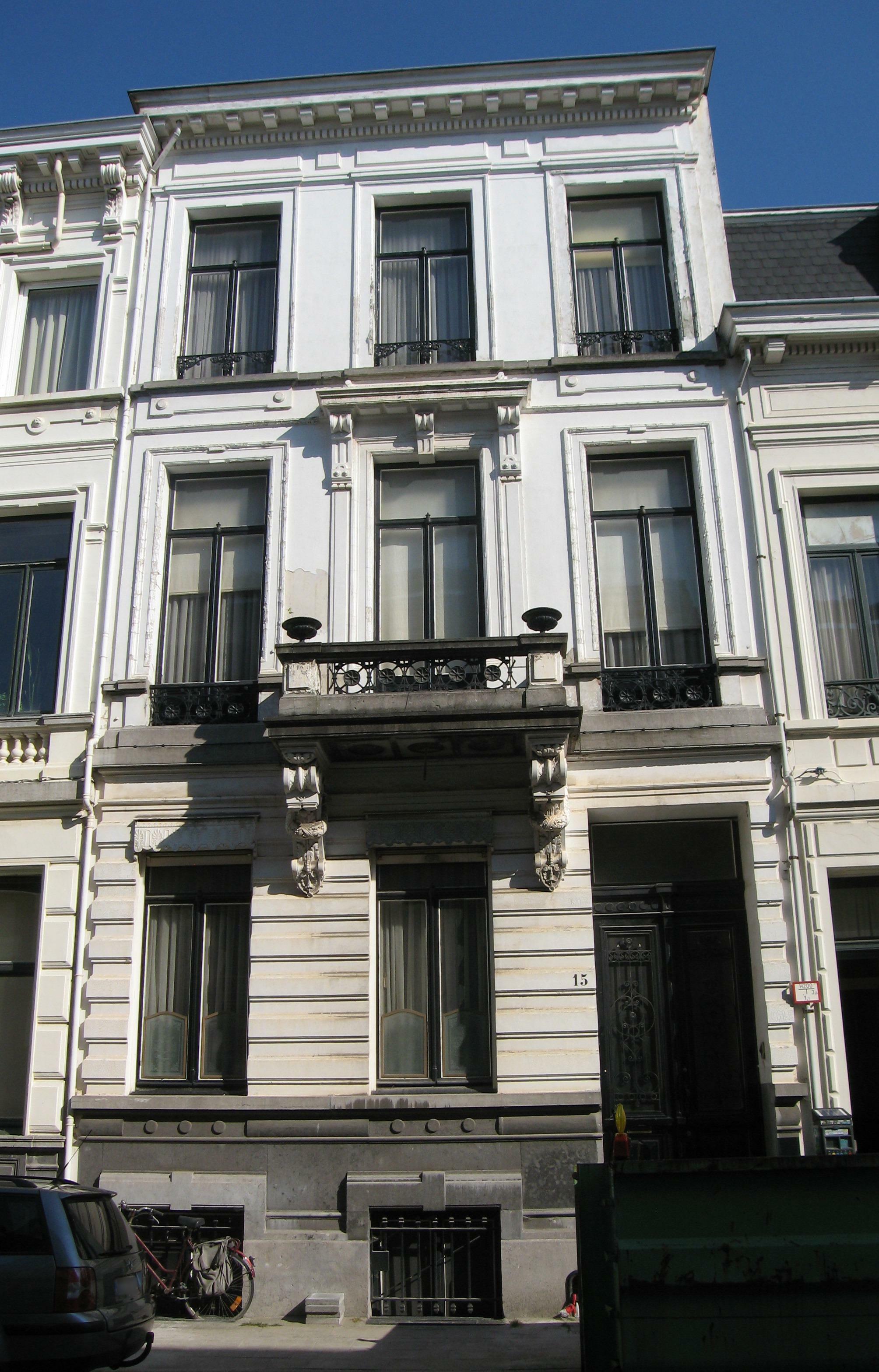 De afbeelding 'Antwerpen Verdussenstraat 15' gemaakt door Braeken, Jo wordt ter beschikking gesteld door Agentschap Onroerend Erfgoed (AOE) onder de volgende voorwaarden: Modellicentie voor gratis hergebruik, Naamsvermelding 4.0 Internationaal.