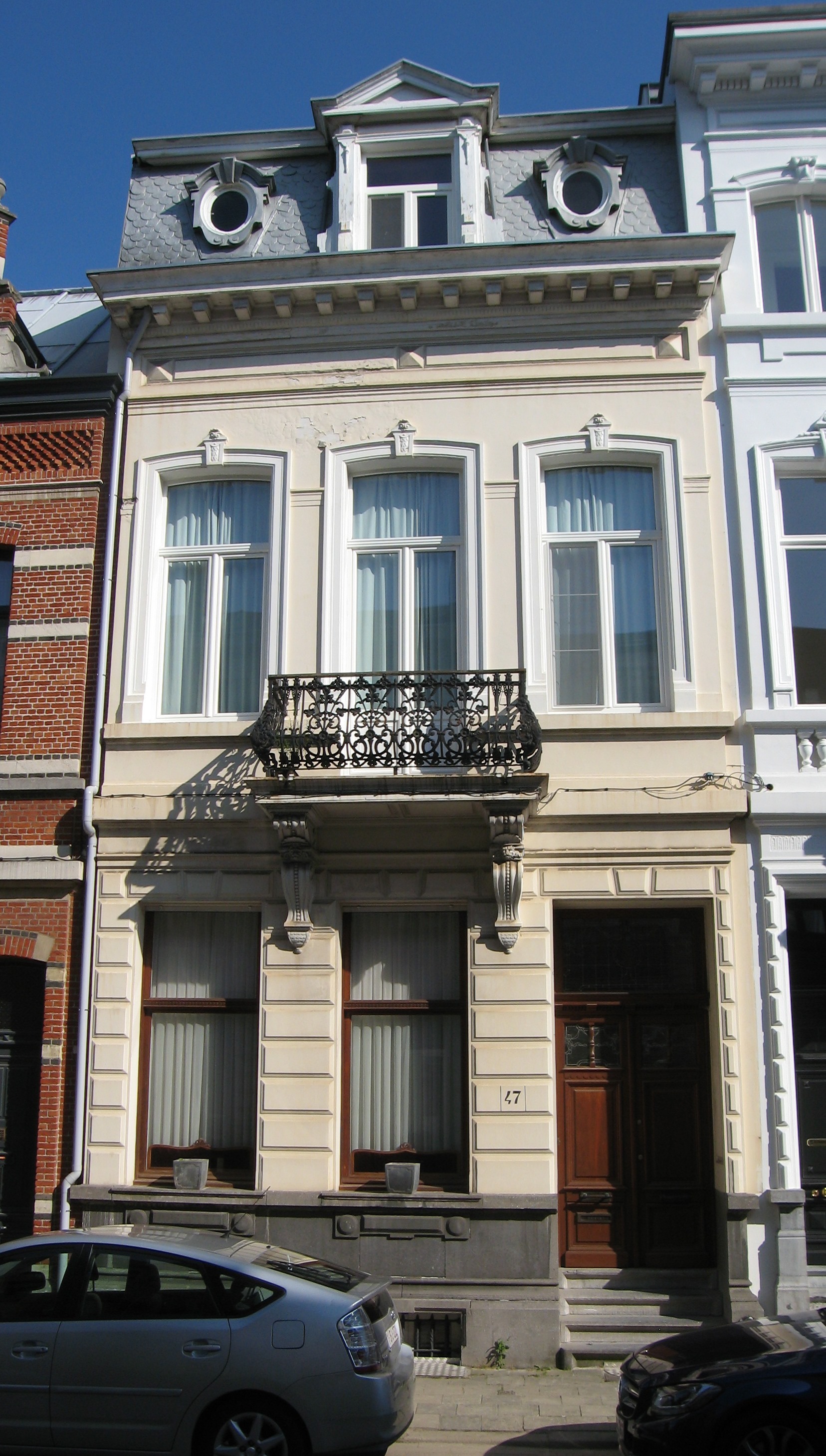 De afbeelding 'Antwerpen Verdussenstraat 47' gemaakt door Braeken, Jo wordt ter beschikking gesteld door Agentschap Onroerend Erfgoed (AOE) onder de volgende voorwaarden: Modellicentie voor gratis hergebruik, Naamsvermelding 4.0 Internationaal.
