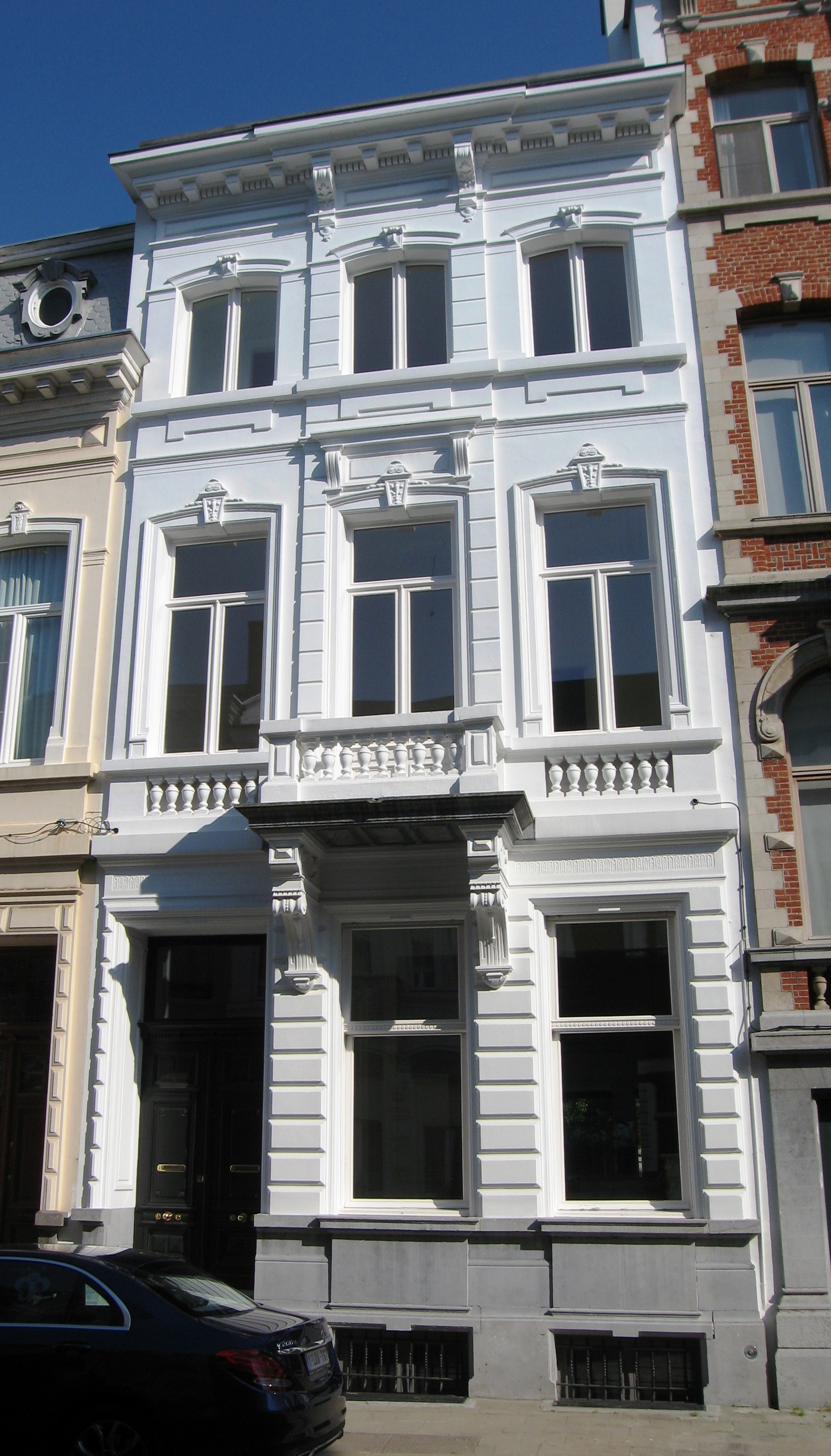 De afbeelding 'Antwerpen Verdussenstraat 49' gemaakt door Braeken, Jo wordt ter beschikking gesteld door Agentschap Onroerend Erfgoed (AOE) onder de volgende voorwaarden: Modellicentie voor gratis hergebruik, Naamsvermelding 4.0 Internationaal.