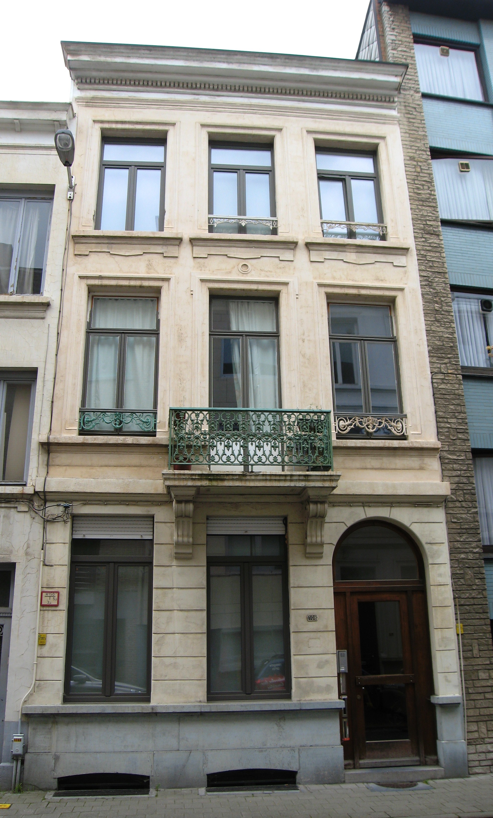 De afbeelding 'Antwerpen Harmoniestraat 108' gemaakt door Braeken, Jo wordt ter beschikking gesteld door Agentschap Onroerend Erfgoed (AOE) onder de volgende voorwaarden: Modellicentie voor gratis hergebruik, Naamsvermelding 4.0 Internationaal.