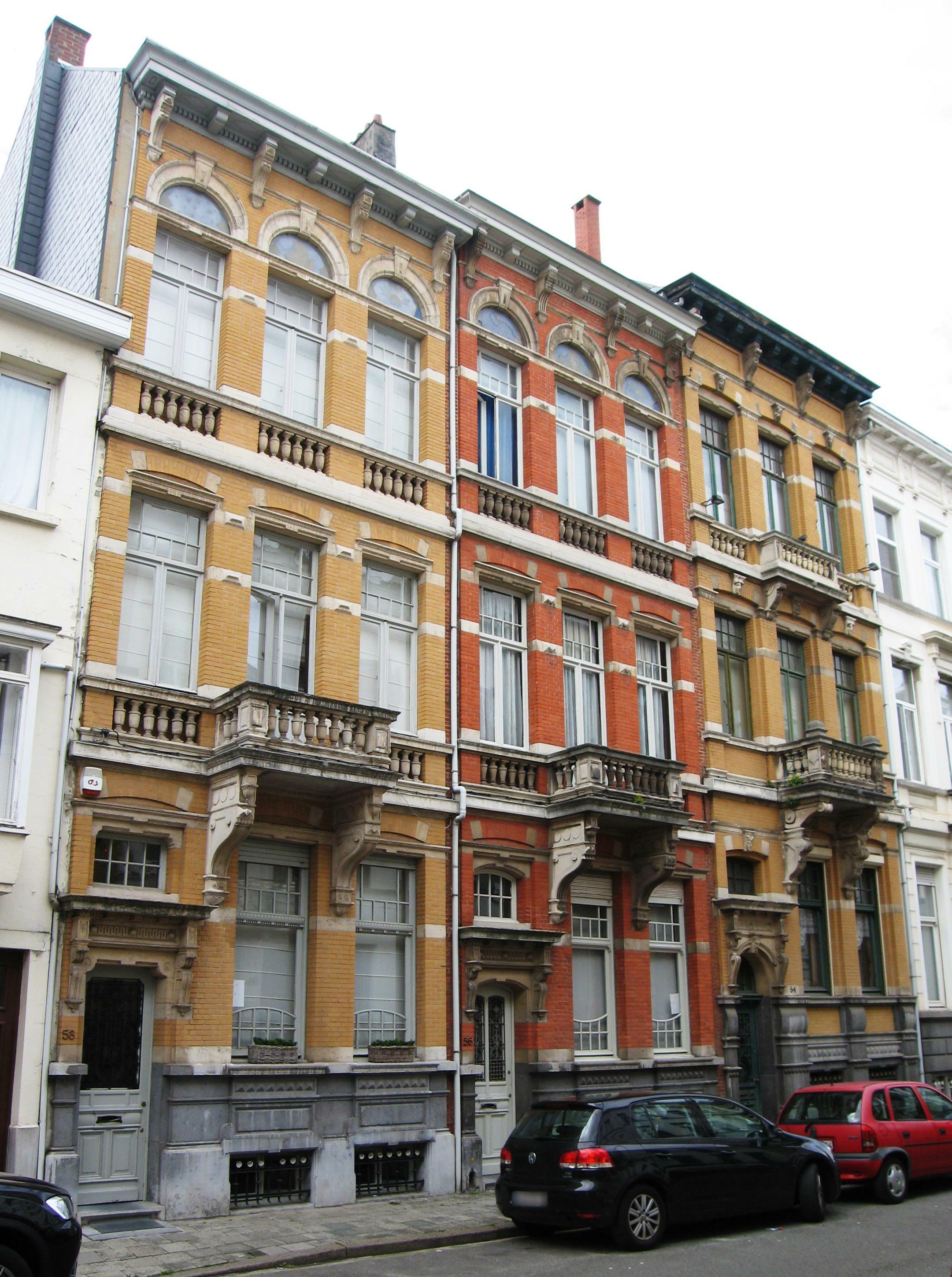 De afbeelding 'Antwerpen Isabella Brantstraat 54-58' gemaakt door Braeken, Jo wordt ter beschikking gesteld door Agentschap Onroerend Erfgoed (AOE) onder de volgende voorwaarden: Modellicentie voor gratis hergebruik, Naamsvermelding 4.0 Internationaal.