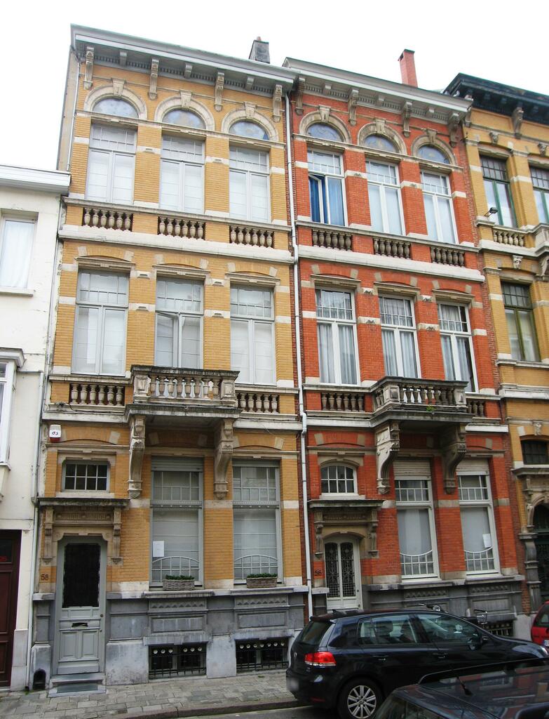 De afbeelding 'Antwerpen Isabella Brantstraat 56-58' gemaakt door Braeken, Jo wordt ter beschikking gesteld door Agentschap Onroerend Erfgoed (AOE) onder de volgende voorwaarden: Modellicentie voor gratis hergebruik, Naamsvermelding 4.0 Internationaal.
