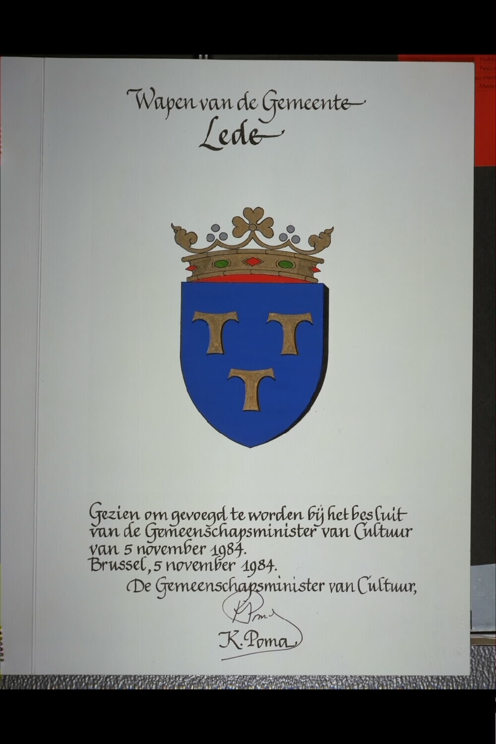 De afbeelding 'Lede Wapenschild' wordt ter beschikking gesteld door Agentschap Onroerend Erfgoed (AOE) onder de volgende voorwaarden: Modellicentie voor gratis hergebruik, Naamsvermelding 4.0 Internationaal.