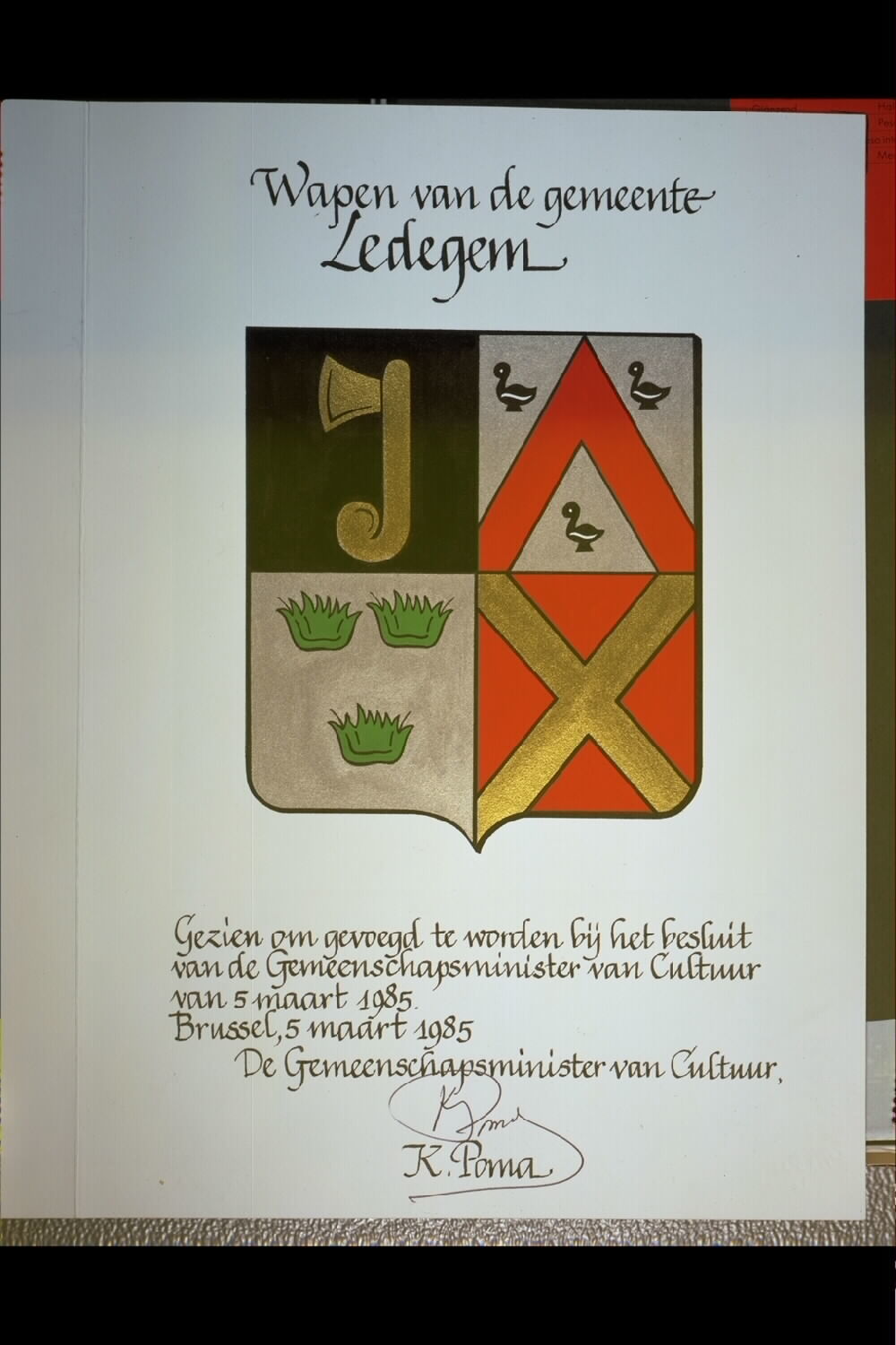 De afbeelding 'Ledegem Wapenschild' wordt ter beschikking gesteld door Agentschap Onroerend Erfgoed (AOE) onder de volgende voorwaarden: Modellicentie voor gratis hergebruik, Naamsvermelding 4.0 Internationaal.