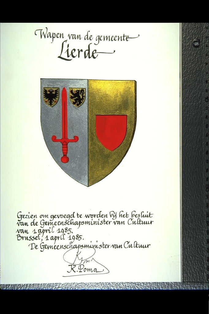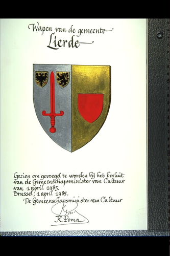 De afbeelding 'Lierde Wapenschild' wordt ter beschikking gesteld door Agentschap Onroerend Erfgoed (AOE) onder de volgende voorwaarden: Modellicentie voor gratis hergebruik, Naamsvermelding 4.0 Internationaal.