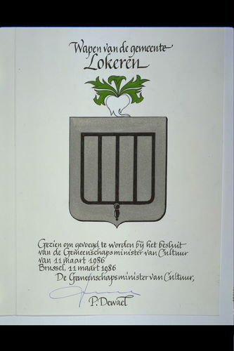 De afbeelding 'Lokeren Wapenschild' wordt ter beschikking gesteld door Agentschap Onroerend Erfgoed (AOE) onder de volgende voorwaarden: Modellicentie voor gratis hergebruik, Naamsvermelding 4.0 Internationaal.