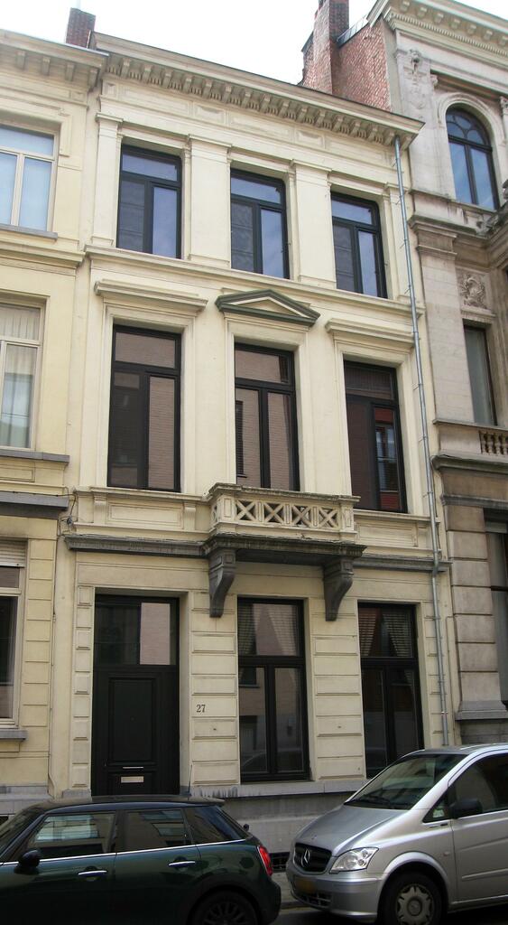 De afbeelding 'Antwerpen Van Schoonbekestraat 27' gemaakt door Braeken, Jo wordt ter beschikking gesteld door Agentschap Onroerend Erfgoed (AOE) onder de volgende voorwaarden: Modellicentie voor gratis hergebruik, Naamsvermelding 4.0 Internationaal.