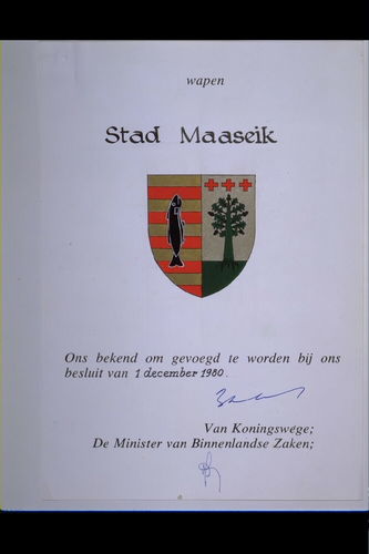 De afbeelding 'Maaseik Wapen' wordt ter beschikking gesteld door Agentschap Onroerend Erfgoed (AOE) onder de volgende voorwaarden: Modellicentie voor gratis hergebruik, Naamsvermelding 4.0 Internationaal.