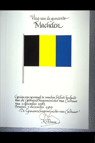 De afbeelding 'Machelen Vlag' wordt ter beschikking gesteld door Agentschap Onroerend Erfgoed (AOE) onder de volgende voorwaarden: Modellicentie voor gratis hergebruik, Naamsvermelding 4.0 Internationaal.