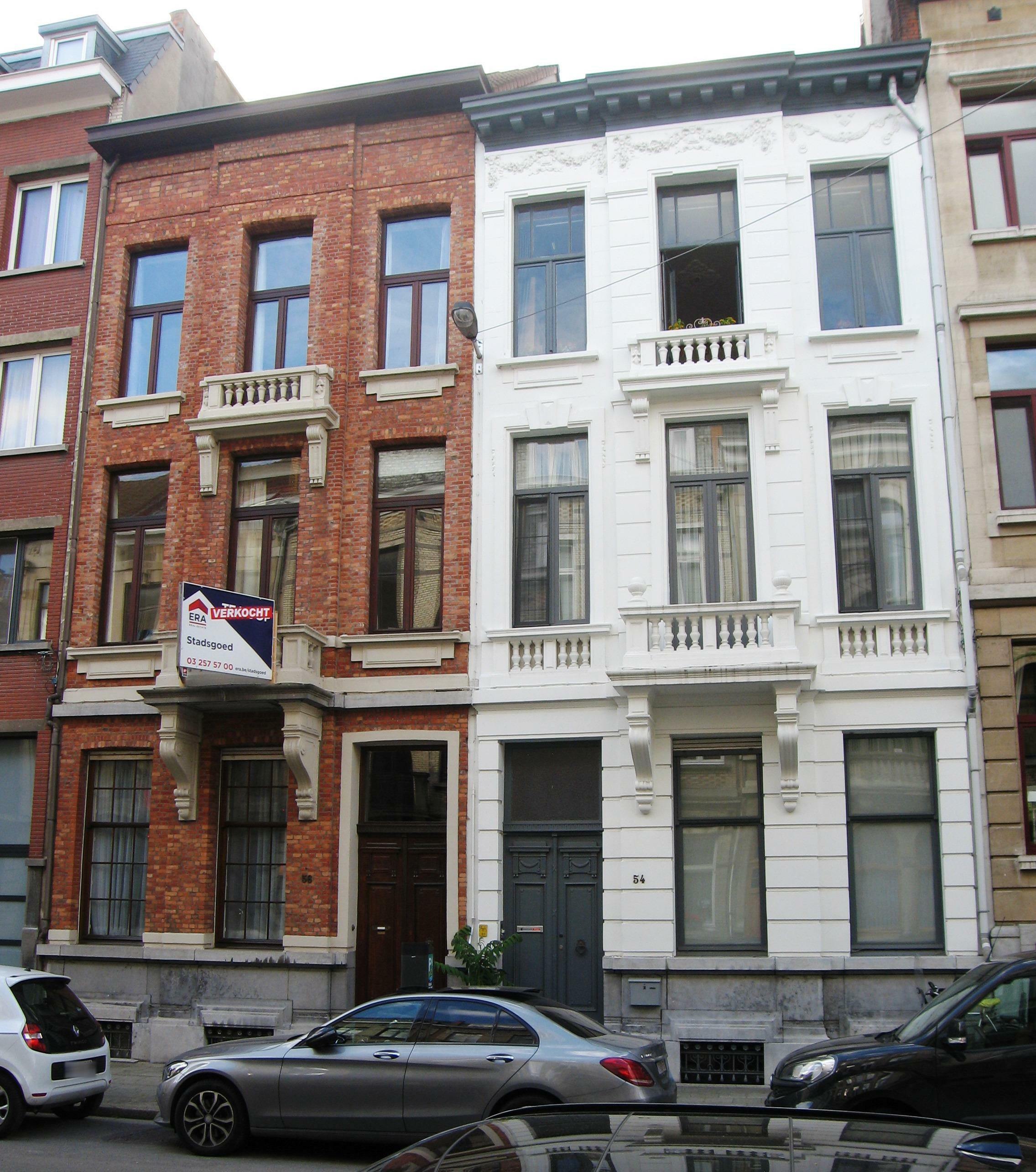 De afbeelding 'Antwerpen Robert Molsstraat 54-56' gemaakt door Braeken, Jo wordt ter beschikking gesteld door Agentschap Onroerend Erfgoed (AOE) onder de volgende voorwaarden: Modellicentie voor gratis hergebruik, Naamsvermelding 4.0 Internationaal.