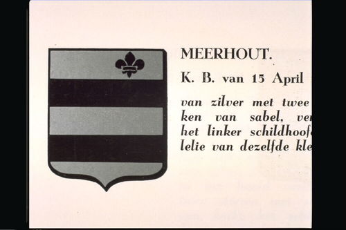 De afbeelding 'Meerhout Wapen' wordt ter beschikking gesteld door Agentschap Onroerend Erfgoed (AOE) onder de volgende voorwaarden: Modellicentie voor gratis hergebruik, Naamsvermelding 4.0 Internationaal.