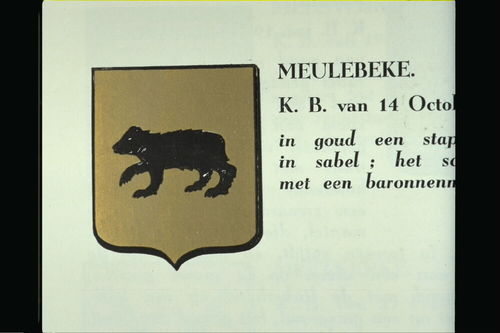 De afbeelding 'Meulebeke Wapen' wordt ter beschikking gesteld door Agentschap Onroerend Erfgoed (AOE) onder de volgende voorwaarden: Modellicentie voor gratis hergebruik, Naamsvermelding 4.0 Internationaal.