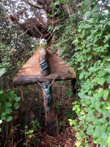 De afbeelding 'Knoteik met herinneringskruis bij toegangsweg Hof Ter Spelt' gemaakt door Wijnant, Jo wordt ter beschikking gesteld door Agentschap Onroerend Erfgoed (AOE) onder de volgende voorwaarden: Modellicentie voor gratis hergebruik, Naamsvermelding 4.0 Internationaal.