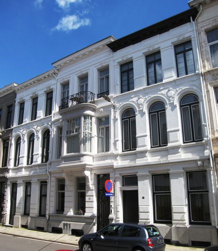 De afbeelding 'Antwerpen Ballaarstraat 21-25' gemaakt door Braeken, Jo wordt ter beschikking gesteld door Agentschap Onroerend Erfgoed (AOE) onder de volgende voorwaarden: Modellicentie voor gratis hergebruik, Naamsvermelding 4.0 Internationaal.