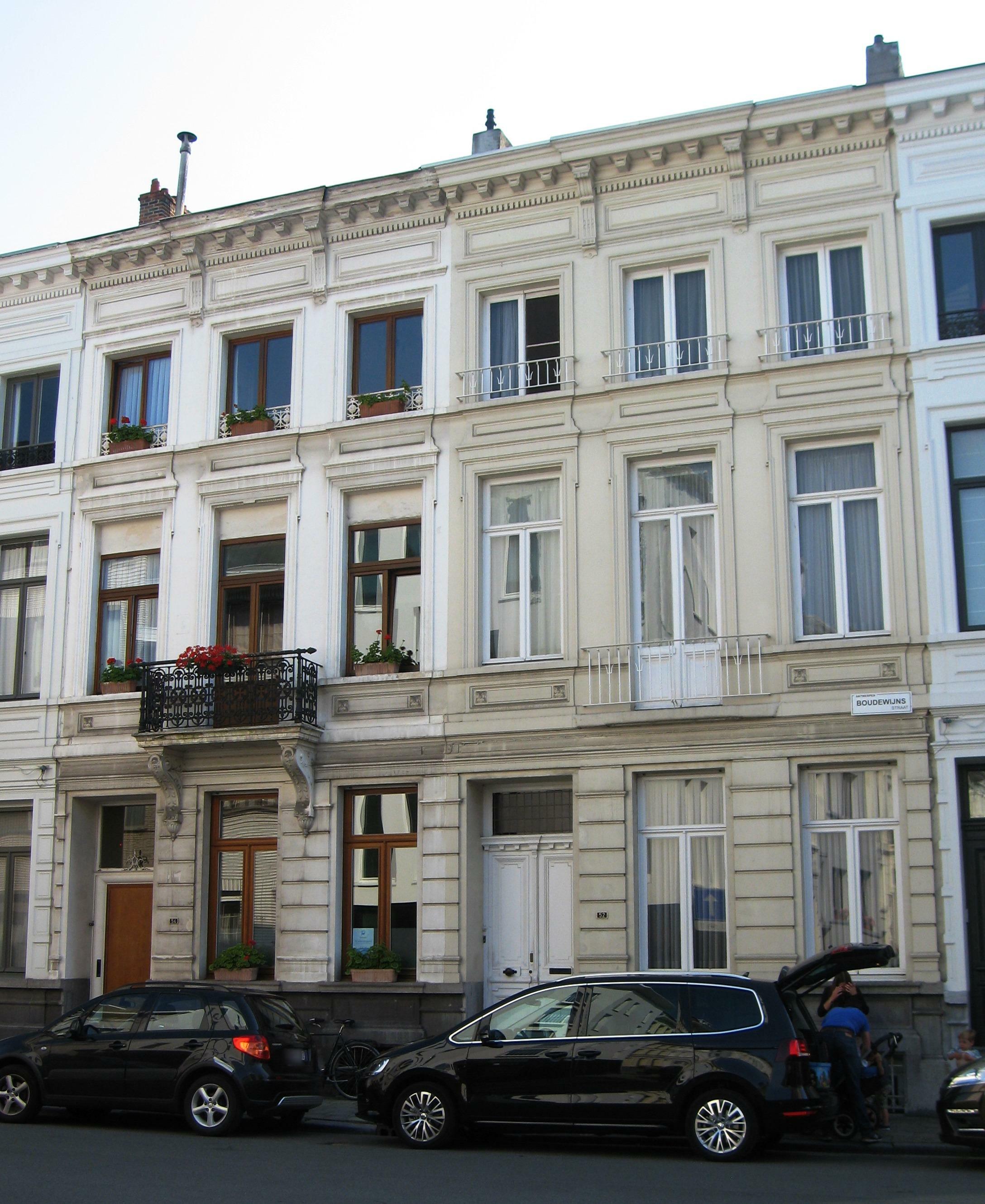 De afbeelding 'Antwerpen Boudewijnsstraat 52-54' gemaakt door Braeken, Jo wordt ter beschikking gesteld door Agentschap Onroerend Erfgoed (AOE) onder de volgende voorwaarden: Modellicentie voor gratis hergebruik, Naamsvermelding 4.0 Internationaal.