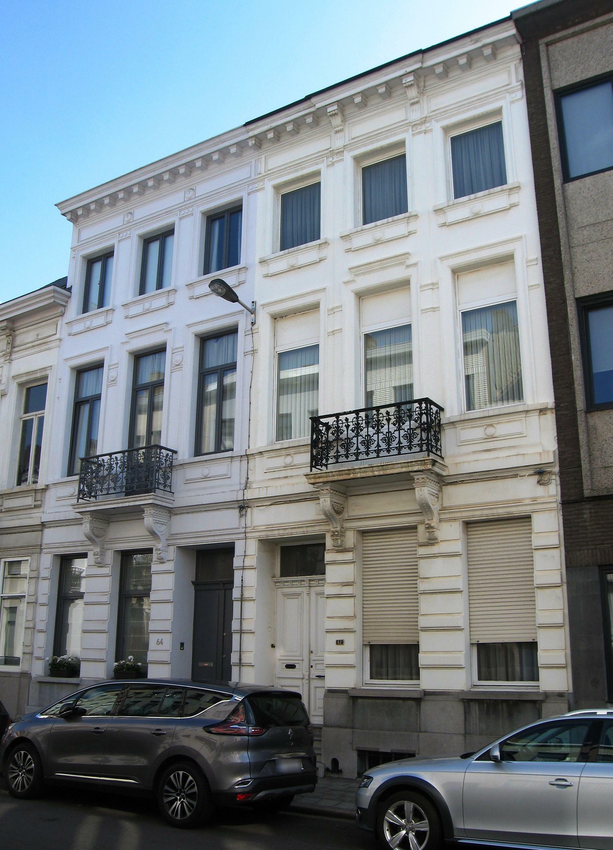 De afbeelding 'Antwerpen Clementinastraat 62-64' gemaakt door Braeken, Jo wordt ter beschikking gesteld door Agentschap Onroerend Erfgoed (AOE) onder de volgende voorwaarden: Modellicentie voor gratis hergebruik, Naamsvermelding 4.0 Internationaal.