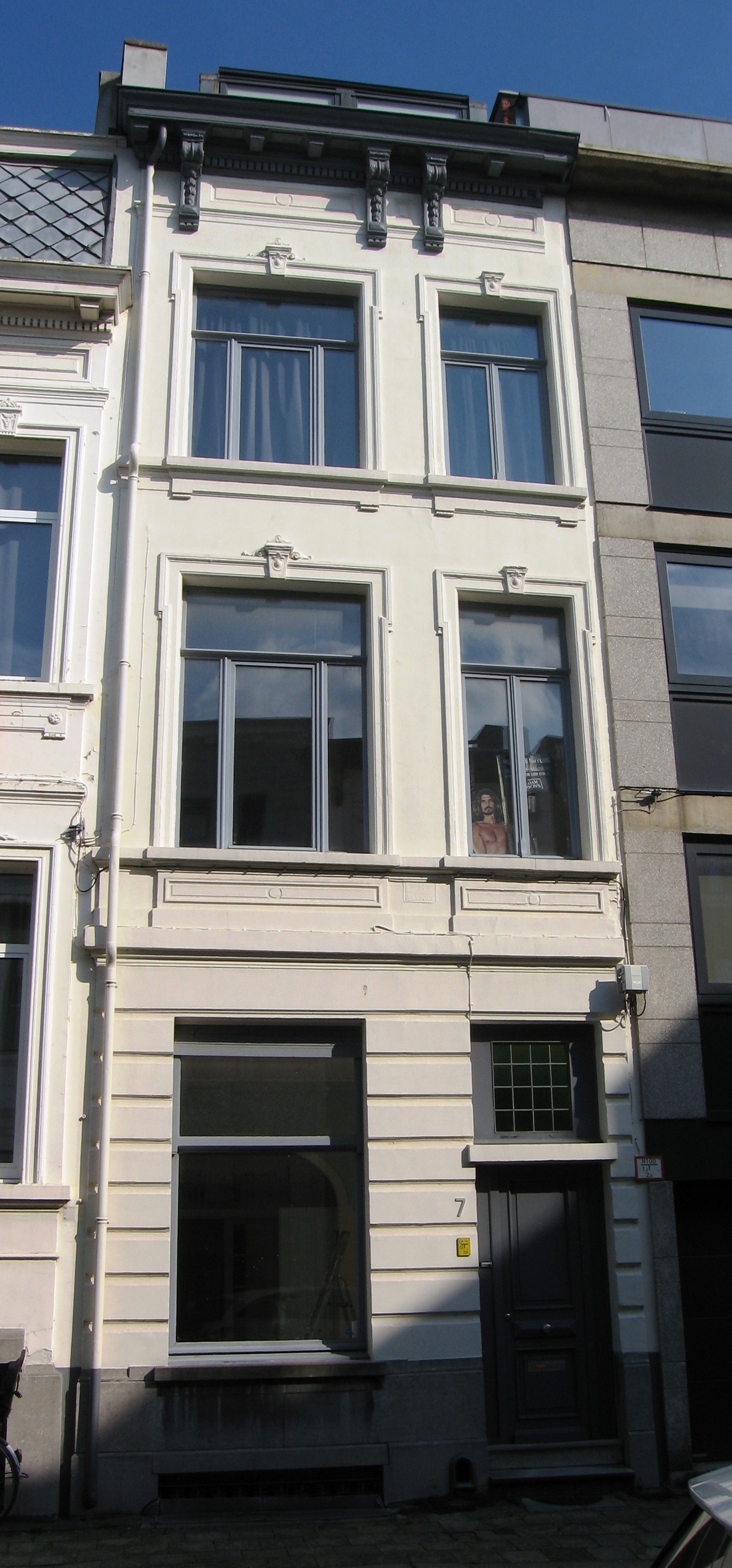 De afbeelding 'Antwerpen Clementinastraat 7' gemaakt door Braeken, Jo wordt ter beschikking gesteld door Agentschap Onroerend Erfgoed (AOE) onder de volgende voorwaarden: Modellicentie voor gratis hergebruik, Naamsvermelding 4.0 Internationaal.