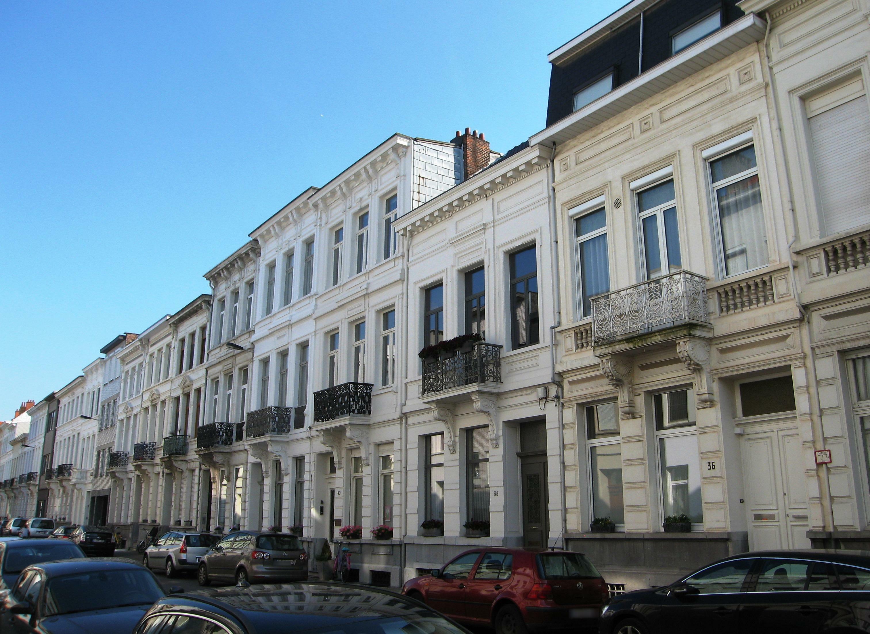 De afbeelding 'Antwerpen Clementinastraat pare zijde' gemaakt door Braeken, Jo wordt ter beschikking gesteld door Agentschap Onroerend Erfgoed (AOE) onder de volgende voorwaarden: Modellicentie voor gratis hergebruik, Naamsvermelding 4.0 Internationaal.