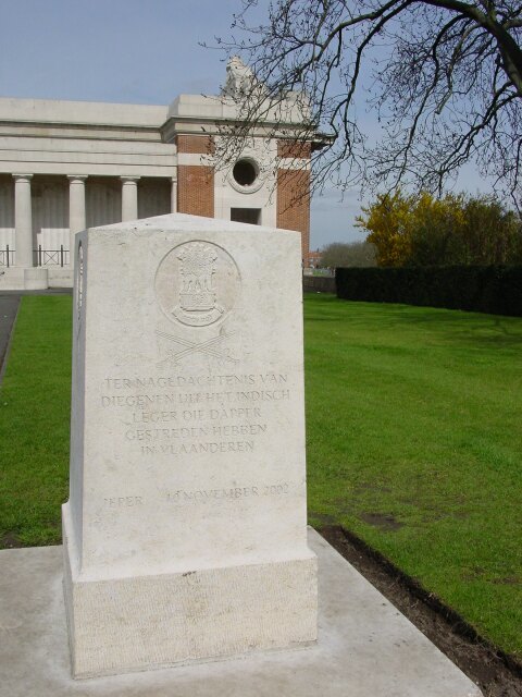 De afbeelding 'Ieper Menensepoort Gedenksteen Indische militairen' gemaakt door Decoodt, Hannelore wordt ter beschikking gesteld door Agentschap Onroerend Erfgoed (AOE) onder de volgende voorwaarden: Modellicentie voor gratis hergebruik, Naamsvermelding 4.0 Internationaal.