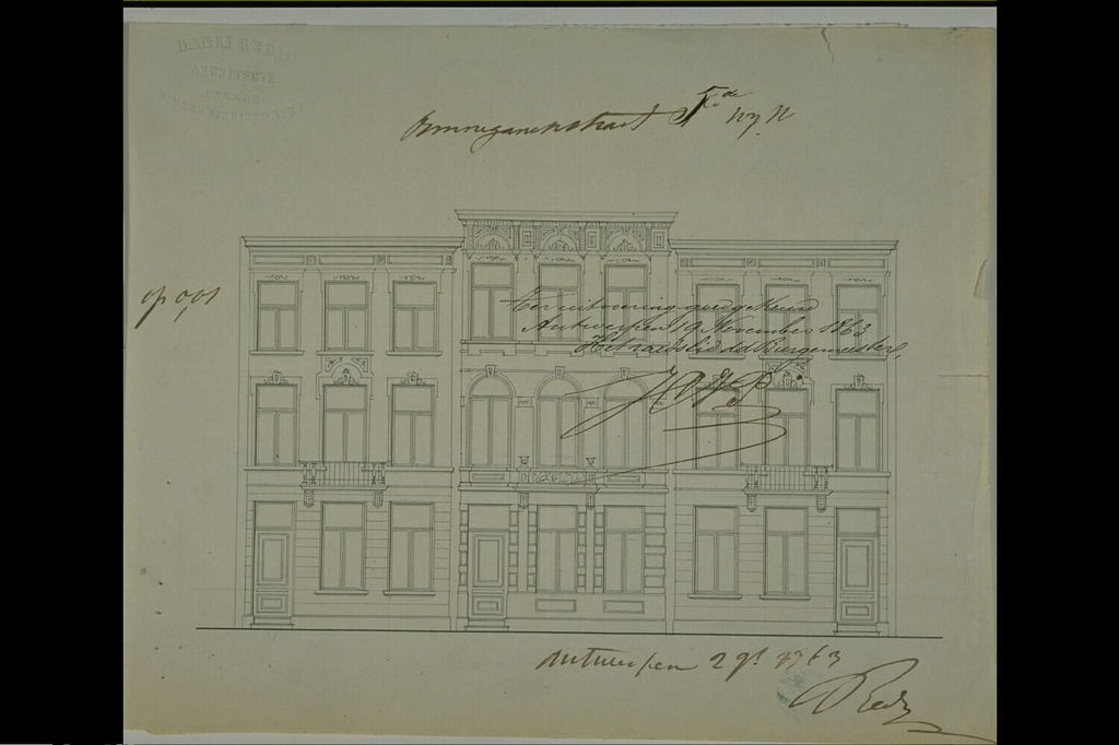 De afbeelding 'Antwerpen Ommeganckstraat bouwaanvraag Redig 1' wordt ter beschikking gesteld door Agentschap Onroerend Erfgoed (AOE) onder de volgende voorwaarden: Modellicentie voor gratis hergebruik, Naamsvermelding 4.0 Internationaal.