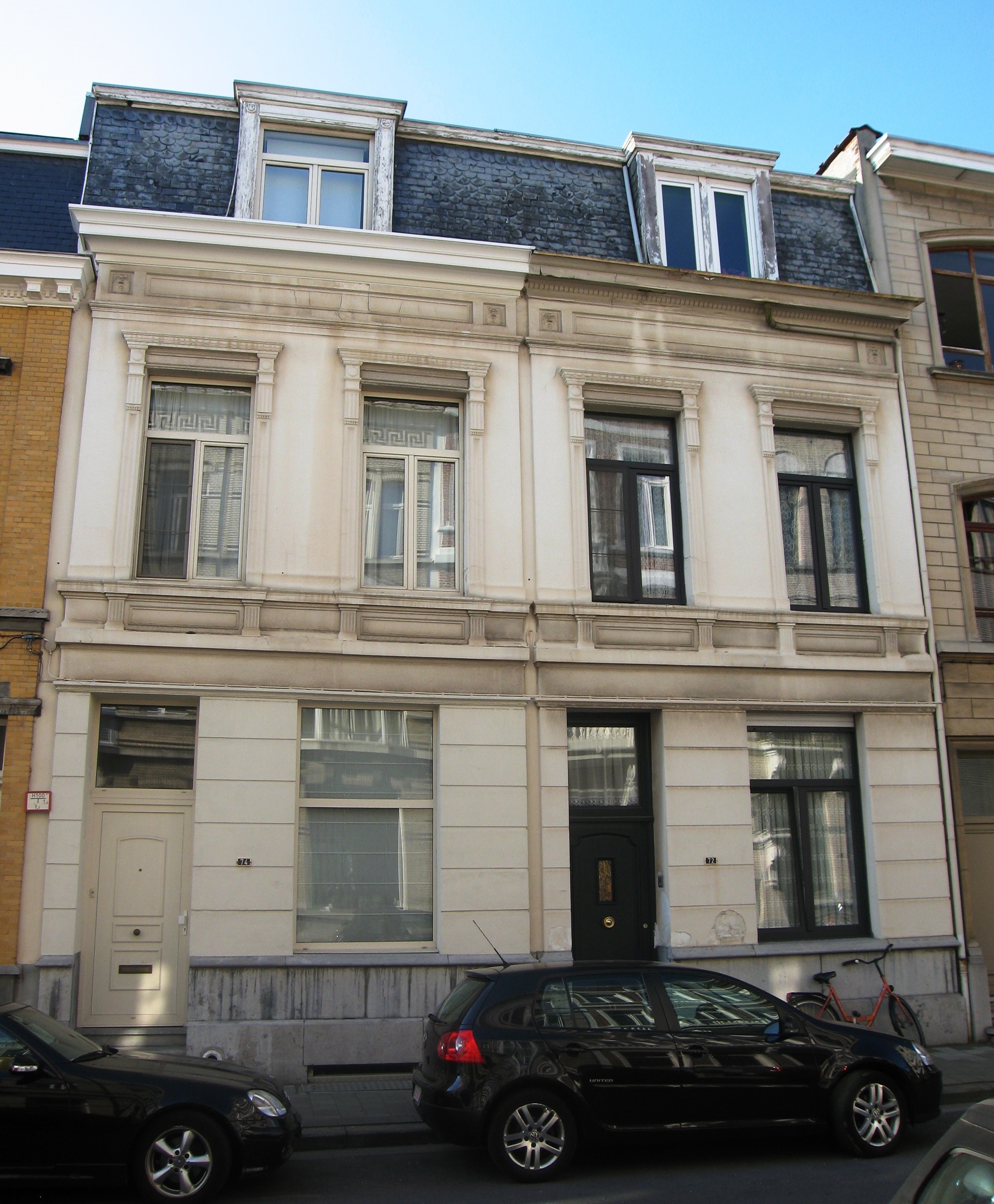 De afbeelding 'Antwerpen Oudekerkstraat 72-74' gemaakt door Braeken, Jo wordt ter beschikking gesteld door Agentschap Onroerend Erfgoed (AOE) onder de volgende voorwaarden: Modellicentie voor gratis hergebruik, Naamsvermelding 4.0 Internationaal.