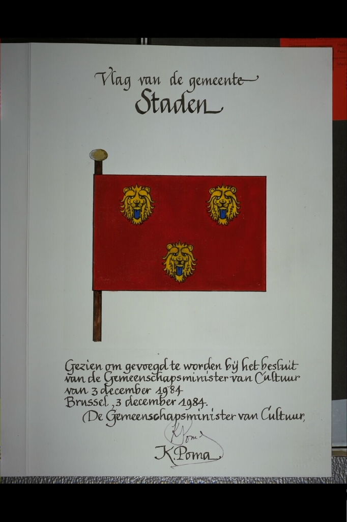 De afbeelding 'Staden Vlag' wordt ter beschikking gesteld door Agentschap Onroerend Erfgoed (AOE) onder de volgende voorwaarden: Modellicentie voor gratis hergebruik, Naamsvermelding 4.0 Internationaal.