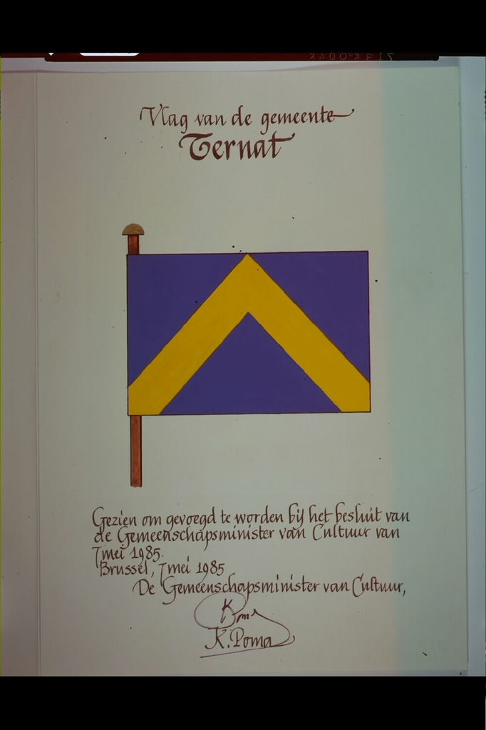 De afbeelding 'Ternat Vlag' wordt ter beschikking gesteld door Agentschap Onroerend Erfgoed (AOE) onder de volgende voorwaarden: Modellicentie voor gratis hergebruik, Naamsvermelding 4.0 Internationaal.