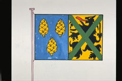 De afbeelding 'Alveringem Vlag' wordt ter beschikking gesteld door Agentschap Onroerend Erfgoed (AOE) onder de volgende voorwaarden: Modellicentie voor gratis hergebruik, Naamsvermelding 4.0 Internationaal.