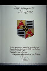 De afbeelding 'Anzegem Wapen' wordt ter beschikking gesteld door Agentschap Onroerend Erfgoed (AOE) onder de volgende voorwaarden: Modellicentie voor gratis hergebruik, Naamsvermelding 4.0 Internationaal.