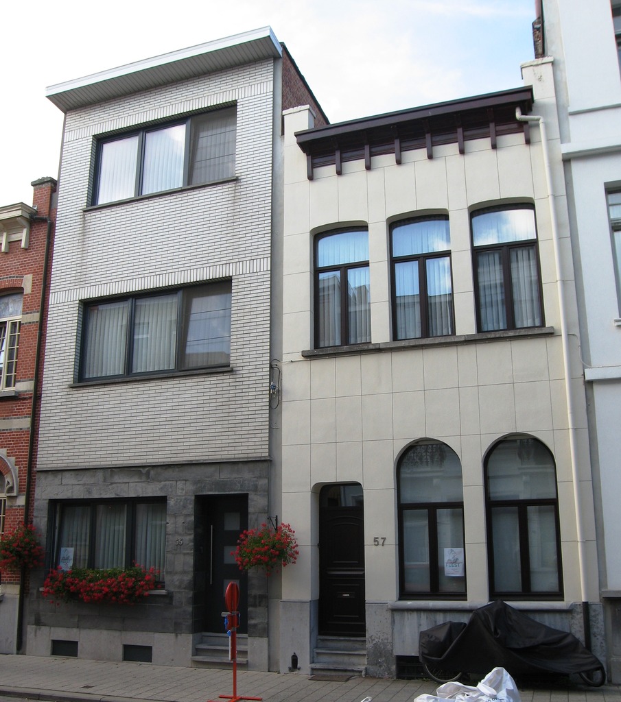 De afbeelding 'Antwerpen Catharina Beersmansstraat 55-57' gemaakt door Braeken, Jo wordt ter beschikking gesteld door Agentschap Onroerend Erfgoed (AOE) onder de volgende voorwaarden: Modellicentie voor gratis hergebruik, Naamsvermelding 4.0 Internationaal.