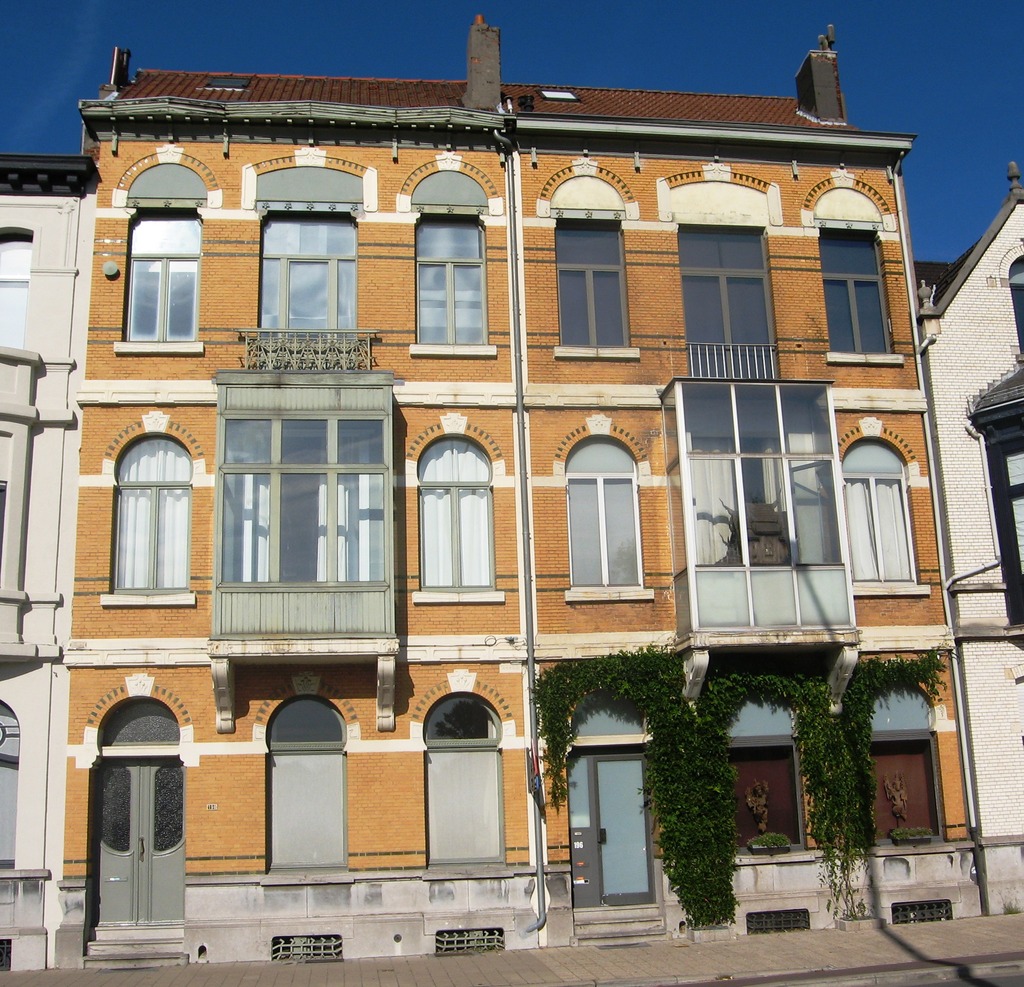 De afbeelding 'Antwerpen Desguinlei 196-198' gemaakt door Braeken, Jo wordt ter beschikking gesteld door Agentschap Onroerend Erfgoed (AOE) onder de volgende voorwaarden: Modellicentie voor gratis hergebruik, Naamsvermelding 4.0 Internationaal.