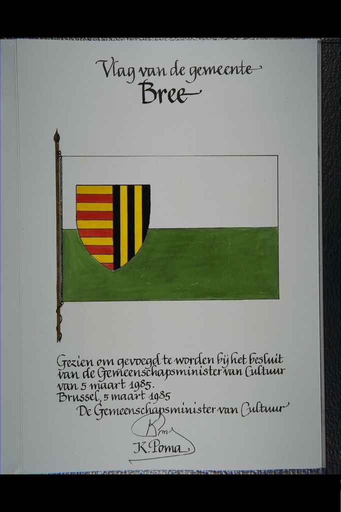 De afbeelding 'Bree Vlag' wordt ter beschikking gesteld door Agentschap Onroerend Erfgoed (AOE) onder de volgende voorwaarden: Modellicentie voor gratis hergebruik, Naamsvermelding 4.0 Internationaal.