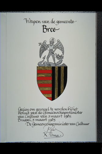 De afbeelding 'Bree Wapen' wordt ter beschikking gesteld door Agentschap Onroerend Erfgoed (AOE) onder de volgende voorwaarden: Modellicentie voor gratis hergebruik, Naamsvermelding 4.0 Internationaal.