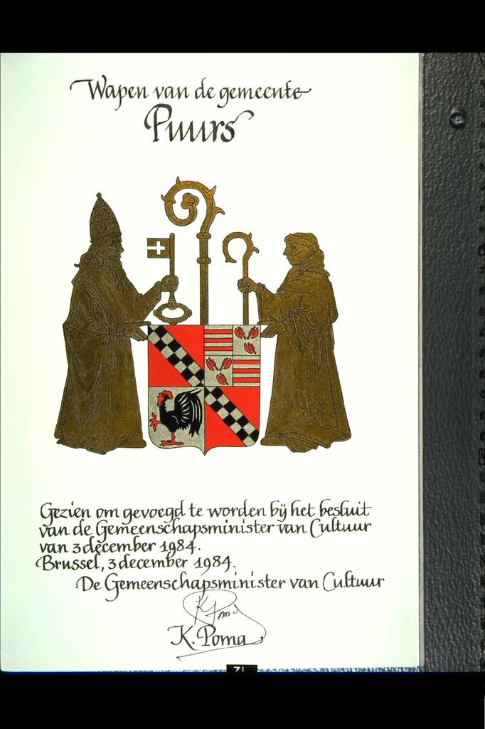 De afbeelding 'Puurs Wapen' wordt ter beschikking gesteld door Agentschap Onroerend Erfgoed (AOE) onder de volgende voorwaarden: Modellicentie voor gratis hergebruik, Naamsvermelding 4.0 Internationaal.