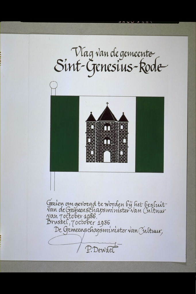 De afbeelding 'Sint-Genesius-Rode Vlag' wordt ter beschikking gesteld door Agentschap Onroerend Erfgoed (AOE) onder de volgende voorwaarden: Modellicentie voor gratis hergebruik, Naamsvermelding 4.0 Internationaal.