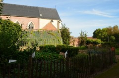 De afbeelding 'Pastorietuin met serre.' gemaakt door Michiels, Marijke wordt ter beschikking gesteld door Agentschap Onroerend Erfgoed (AOE) onder de volgende voorwaarden: Modellicentie voor gratis hergebruik, Naamsvermelding 4.0 Internationaal.