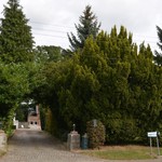 Villatuin met groot uitgegroeide Ierse taxus.