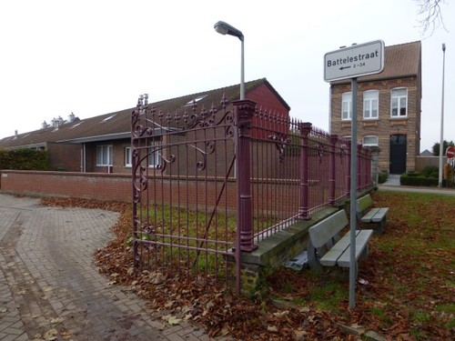 De afbeelding 'Rood geschilderd 19de-eeuws hekwerk.' gemaakt door Michiels, Marijke wordt ter beschikking gesteld door Agentschap Onroerend Erfgoed (AOE) onder de volgende voorwaarden: Modellicentie voor gratis hergebruik, Naamsvermelding 4.0 Internationaal.