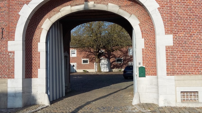 Toegangspoort en binnenplaats van de hoeve Sneyers.