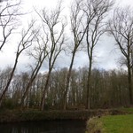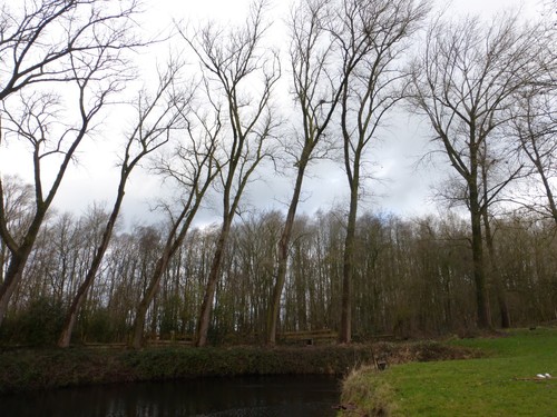 Krater 5 van 27 maart 1916 bij Sint-Elooi (Ieper-Voormezele). Een bomenrij van oude populieren op de perceelsrand.