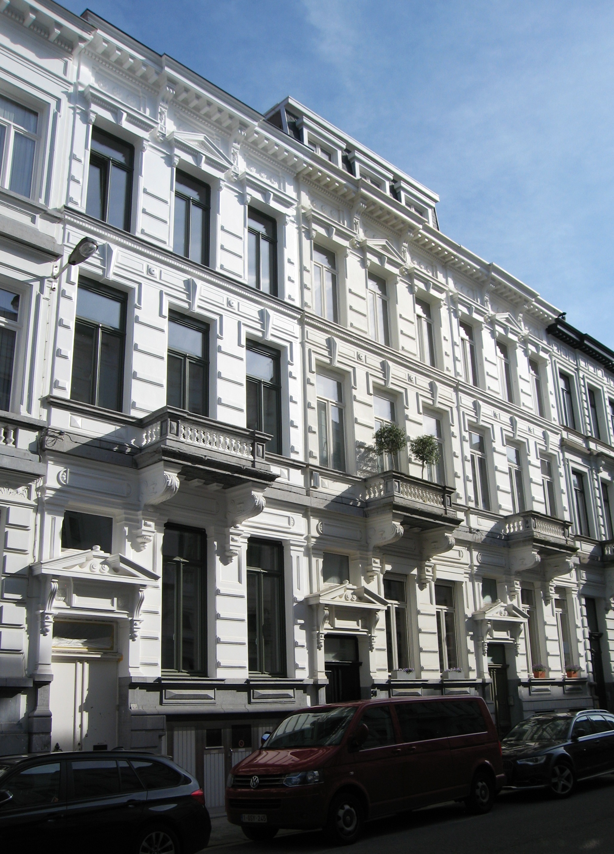 De afbeelding 'Antwerpen Isabella Brantstraat 49-53' gemaakt door Braeken, Jo wordt ter beschikking gesteld door Agentschap Onroerend Erfgoed (AOE) onder de volgende voorwaarden: Modellicentie voor gratis hergebruik, Naamsvermelding 4.0 Internationaal.