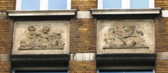 De afbeelding 'Antwerpen Rijnpoortvest 30-32 gevelstenen' gemaakt door Braeken, Jo wordt ter beschikking gesteld door Agentschap Onroerend Erfgoed (AOE) onder de volgende voorwaarden: Modellicentie voor gratis hergebruik, Naamsvermelding 4.0 Internationaal.