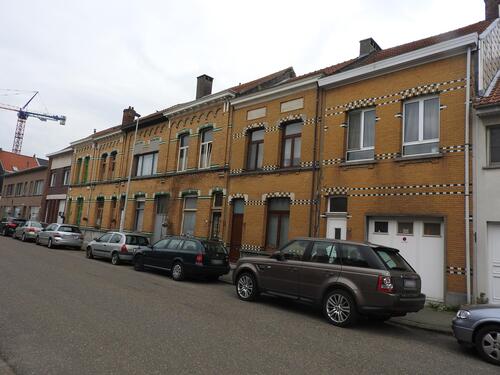 De afbeelding 'Eenheidsbebouwing in eclectische stijl' gemaakt door Hooft, Elise wordt ter beschikking gesteld door Agentschap Onroerend Erfgoed (AOE) onder de volgende voorwaarden: Modellicentie voor gratis hergebruik, Naamsvermelding 4.0 Internationaal.