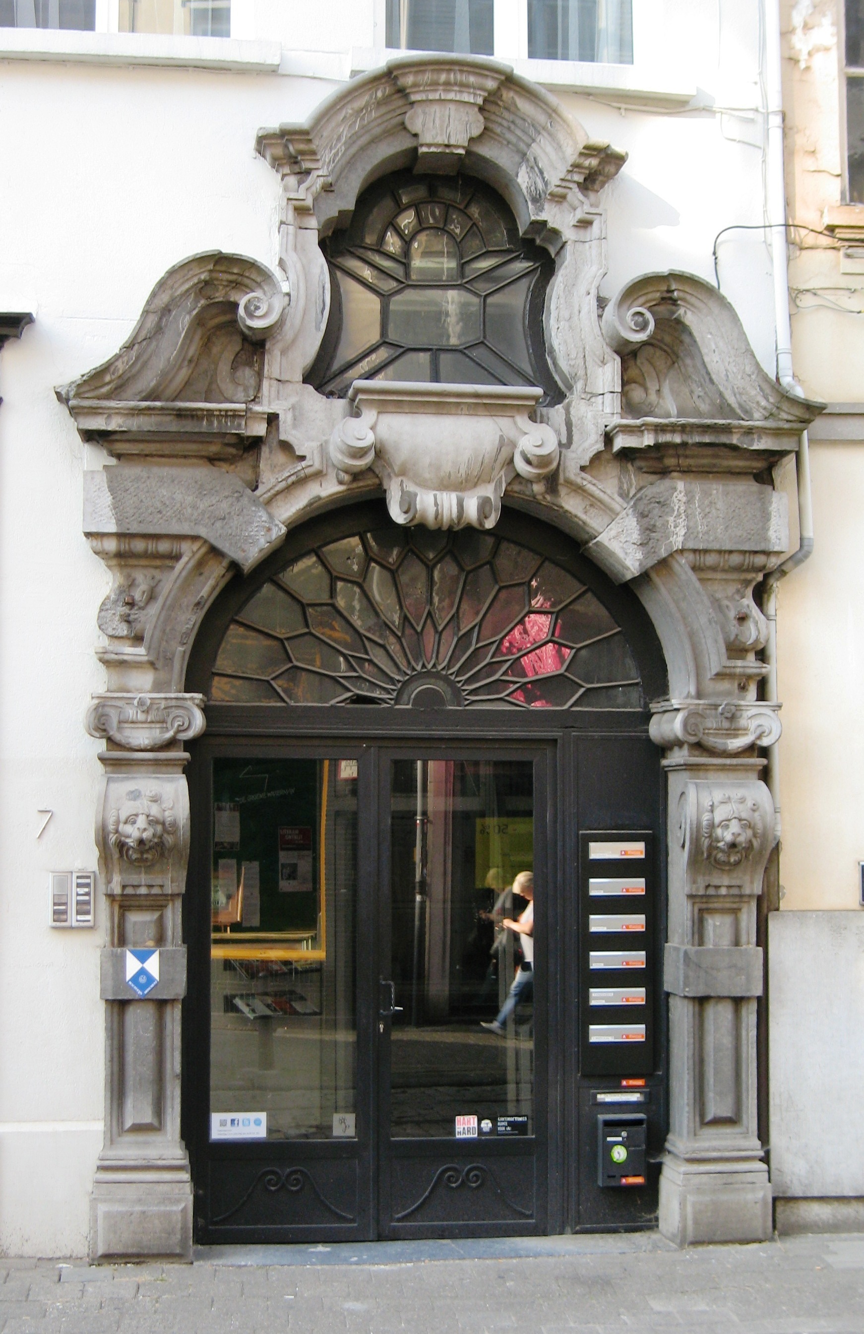De afbeelding 'Antwerpen Wolstraat 7 poort' gemaakt door Braeken, Jo wordt ter beschikking gesteld door Agentschap Onroerend Erfgoed (AOE) onder de volgende voorwaarden: Modellicentie voor gratis hergebruik, Naamsvermelding 4.0 Internationaal.