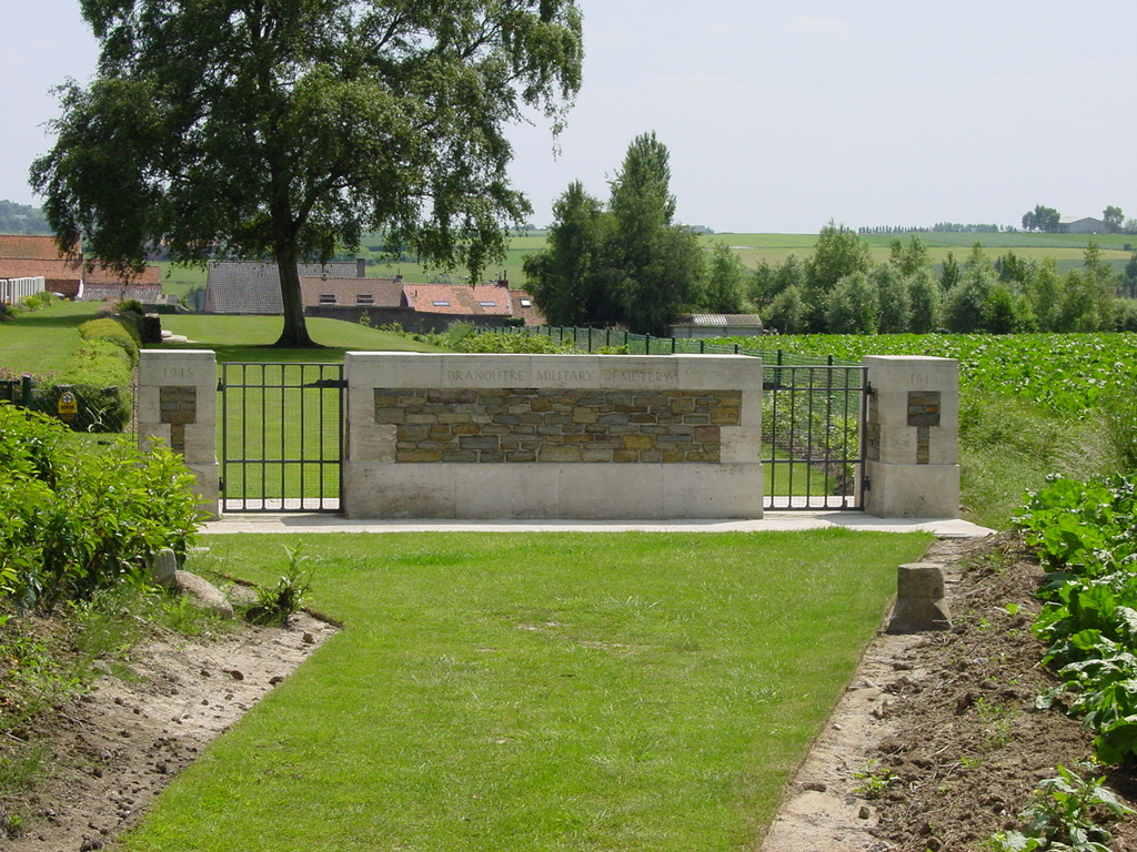 De afbeelding 'Dranouter: Dranoutre Military Cemetery: toegang' gemaakt door Decoodt, Hannelore wordt ter beschikking gesteld door Agentschap Onroerend Erfgoed (AOE) onder de volgende voorwaarden: Modellicentie voor gratis hergebruik, Naamsvermelding 4.0 Internationaal.