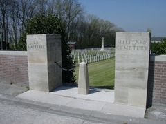 De afbeelding 'Kemmel: La Laiterie Military Cemetery: toegang' gemaakt door Decoodt, Hannelore wordt ter beschikking gesteld door Agentschap Onroerend Erfgoed (AOE) onder de volgende voorwaarden: Modellicentie voor gratis hergebruik, Naamsvermelding 4.0 Internationaal.
