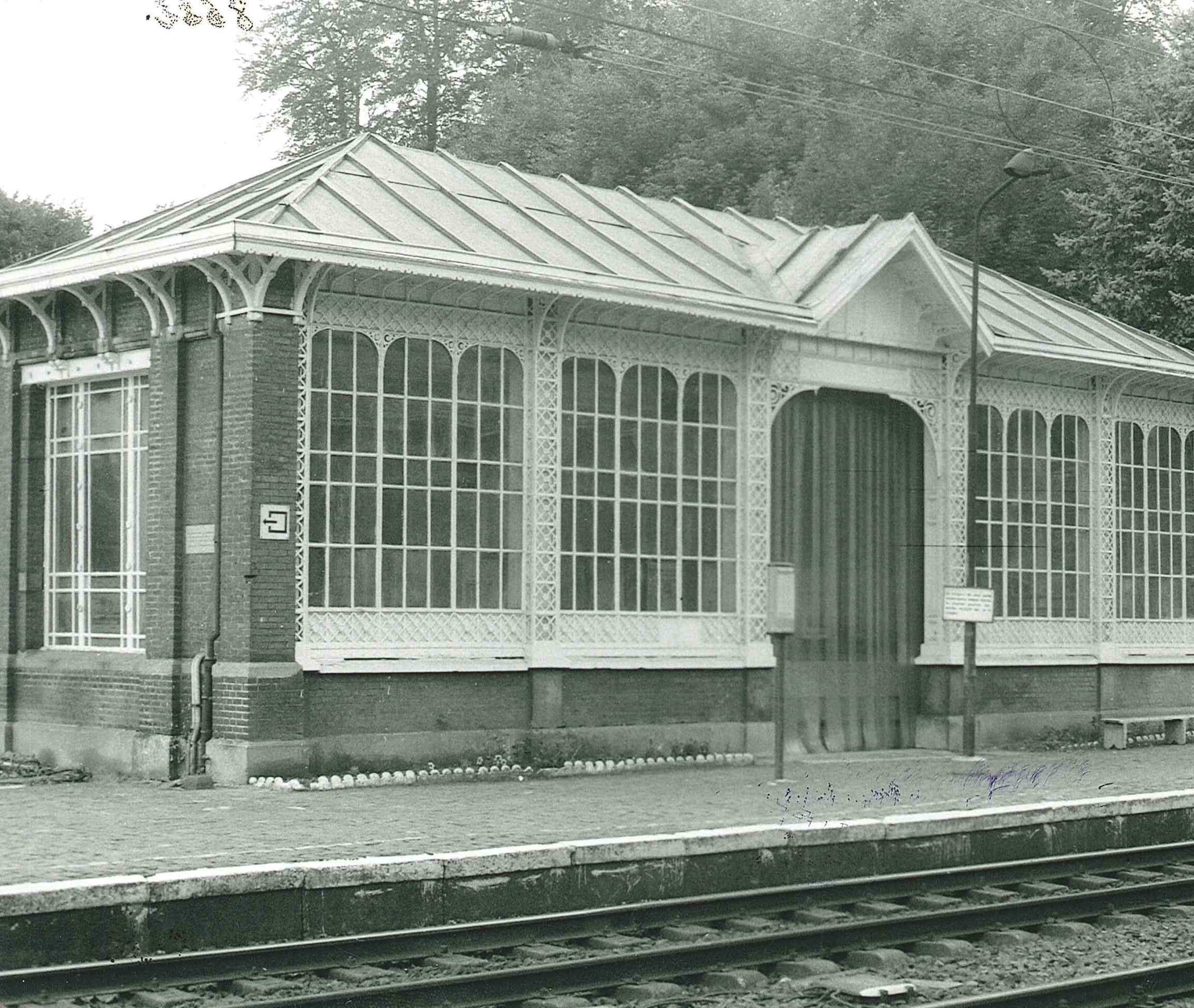 De afbeelding 'Station Groenendaal met schuilplaats' gemaakt door De Maegd, Christiane wordt ter beschikking gesteld door Agentschap Onroerend Erfgoed (AOE) onder de volgende voorwaarden: Modellicentie voor gratis hergebruik, Naamsvermelding 4.0 Internationaal.