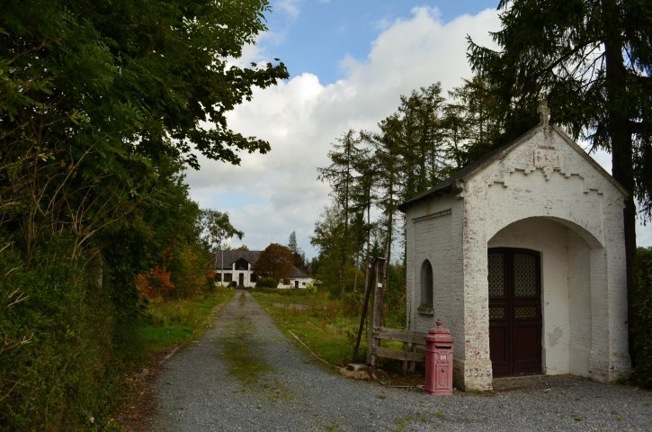 De afbeelding 'Oprit met kapelletje naar de schans.' gemaakt door Michiels, Marijke wordt ter beschikking gesteld door Agentschap Onroerend Erfgoed (AOE) onder de volgende voorwaarden: Modellicentie voor gratis hergebruik, Naamsvermelding 4.0 Internationaal.