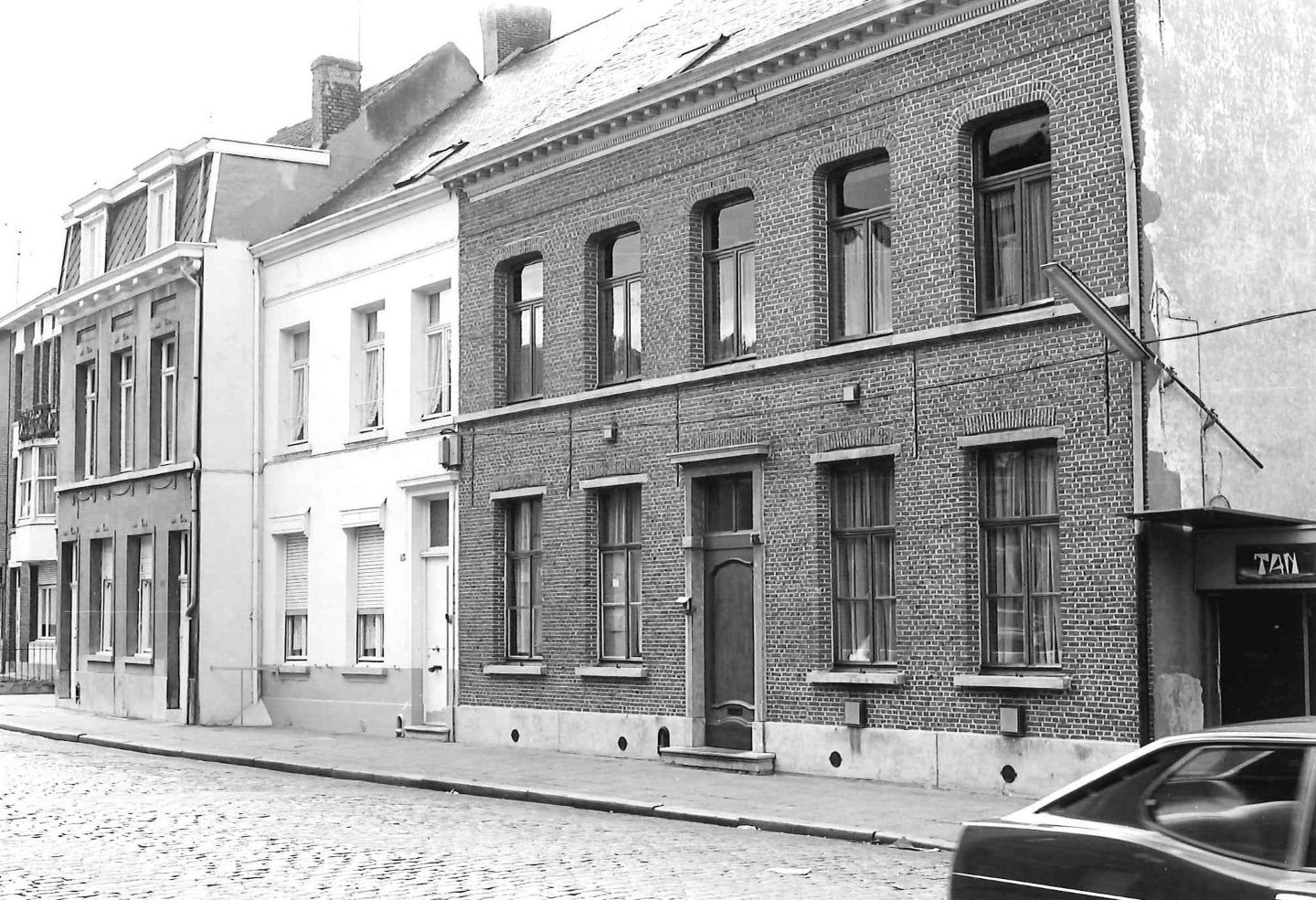 De afbeelding 'Drie neoclassicistische stadswoningen' wordt ter beschikking gesteld door Agentschap Onroerend Erfgoed (AOE) onder de volgende voorwaarden: Modellicentie voor gratis hergebruik, Naamsvermelding 4.0 Internationaal.