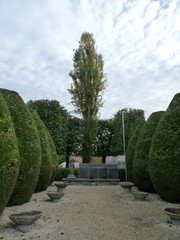 De afbeelding 'Cipressen en Italiaanse populier in krans van lindes als vredesbomen' gemaakt door Schepens, Annelies wordt ter beschikking gesteld door Agentschap Onroerend Erfgoed (AOE) onder de volgende voorwaarden: Modellicentie voor gratis hergebruik, Naamsvermelding 4.0 Internationaal.